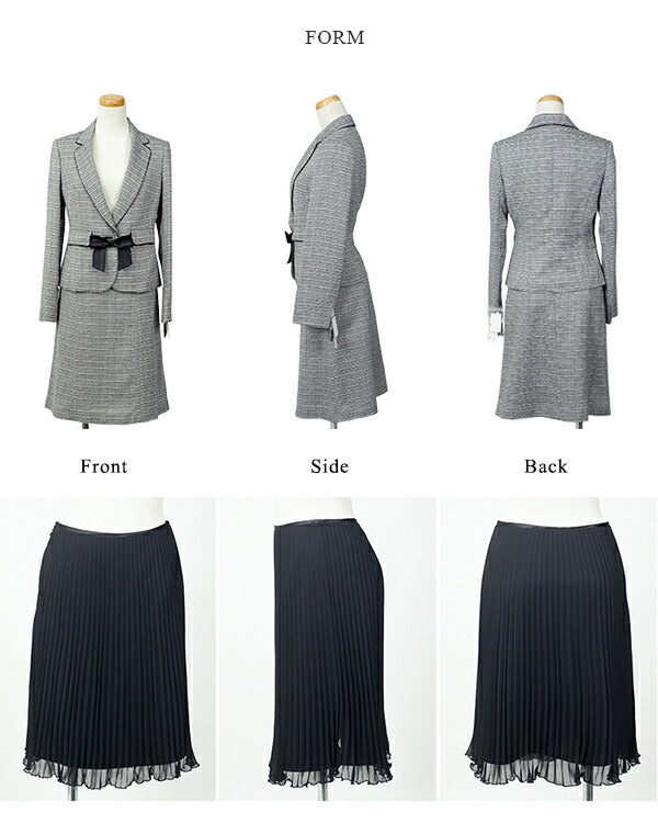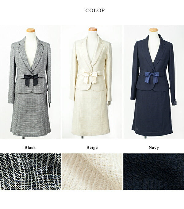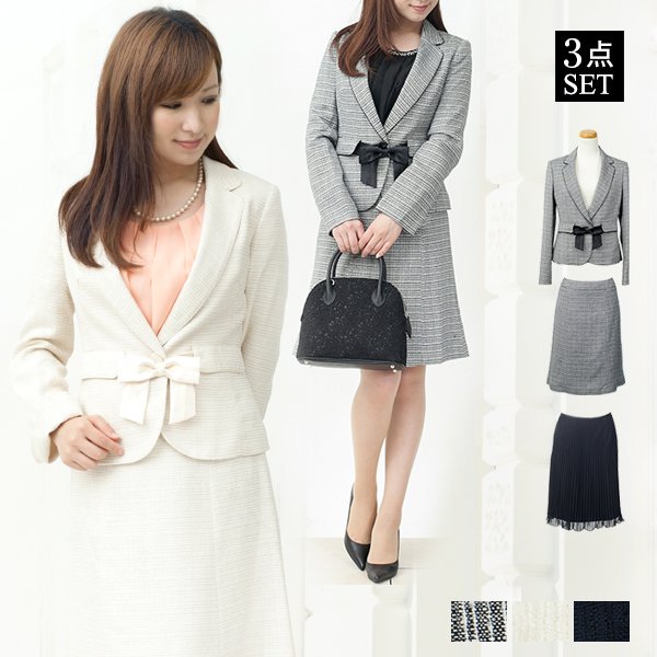 カスリツイードのリボン付 スカートスーツ 3点セット
