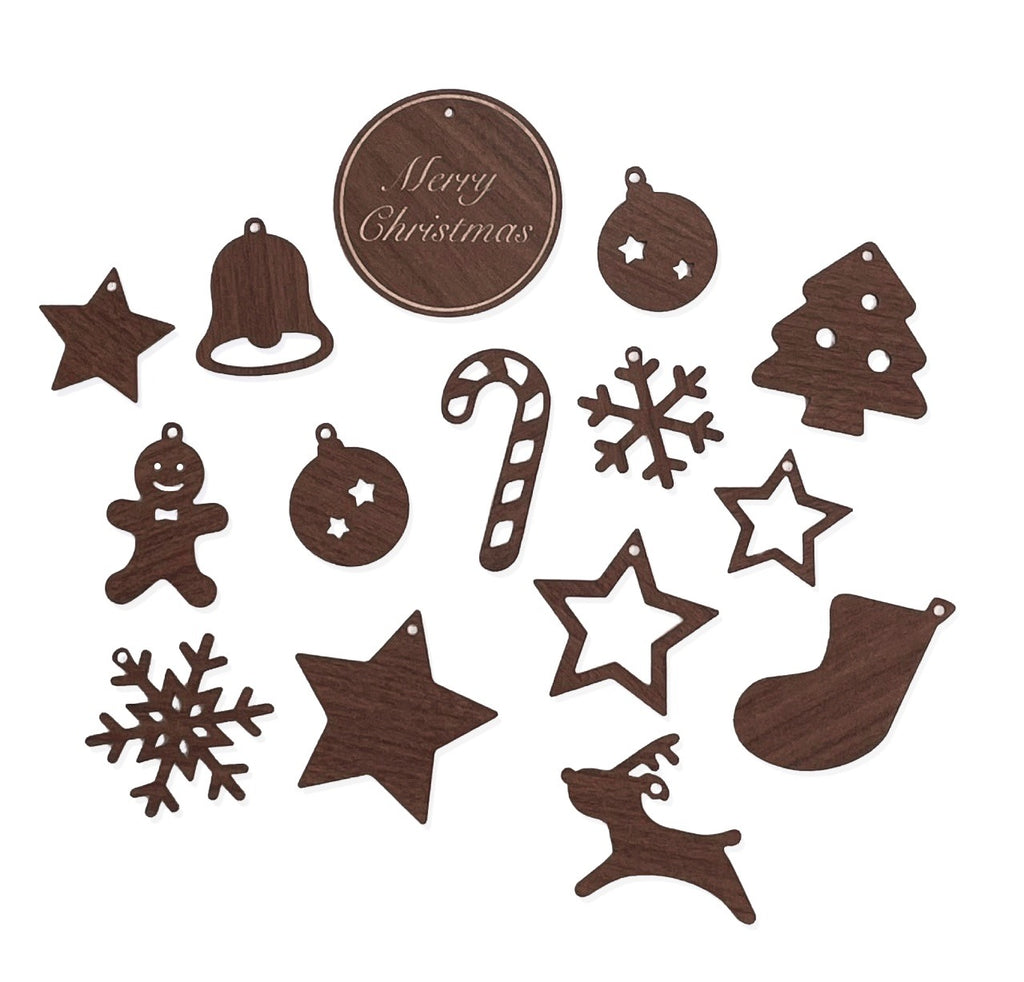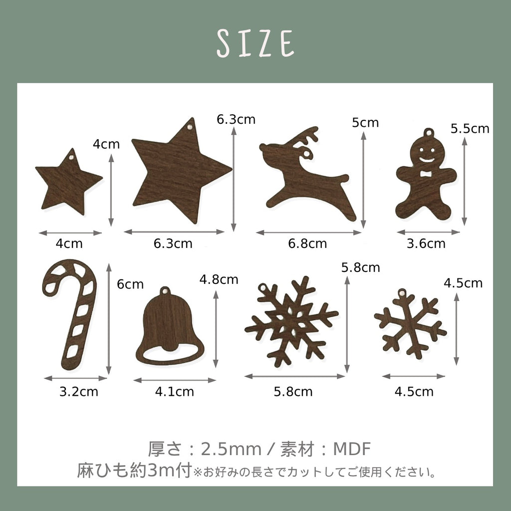 クリスマスプレート×1個 ベル×1個 くつした×1個 トナカイ×1個 雪の結晶×2個